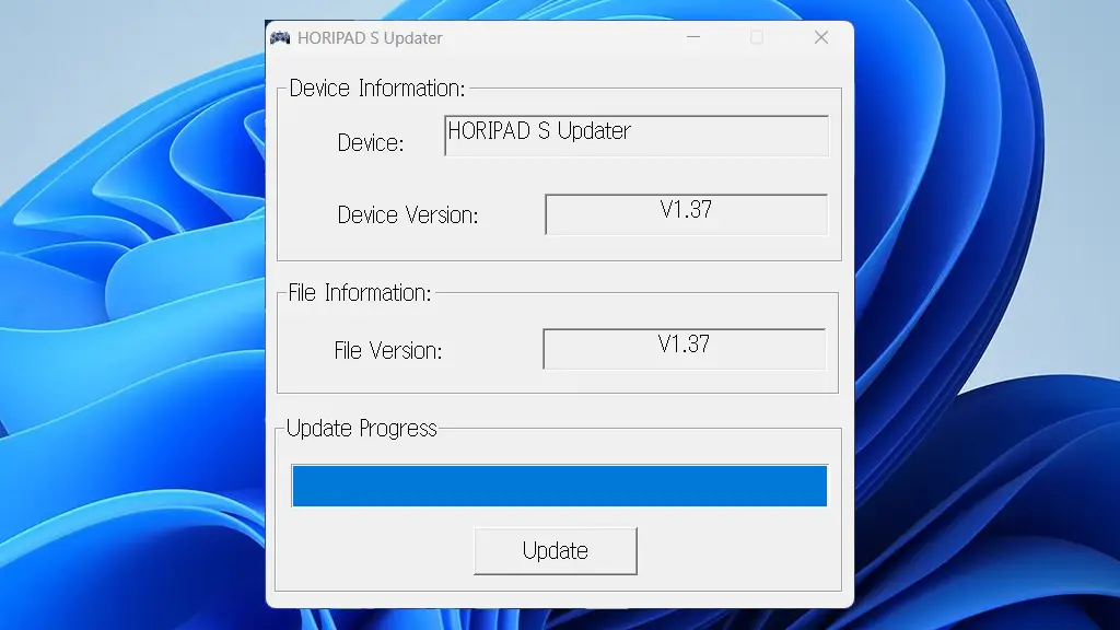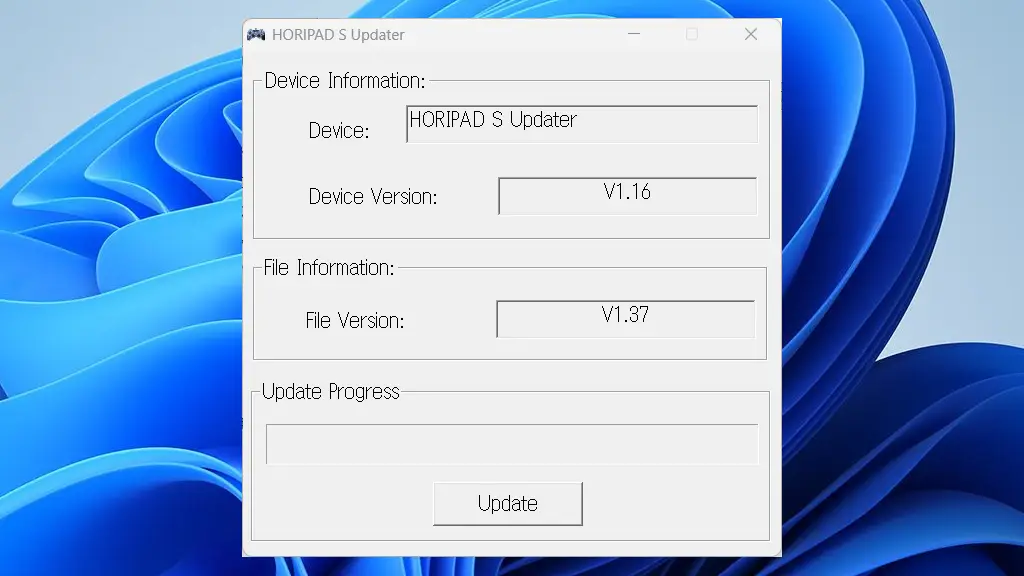 前述した公式サイトよりダウンロードしたファイルを展開(解凍)して、中のUpdate_HORI(1996)~を実行しUpdateをクリックすれば完了です。