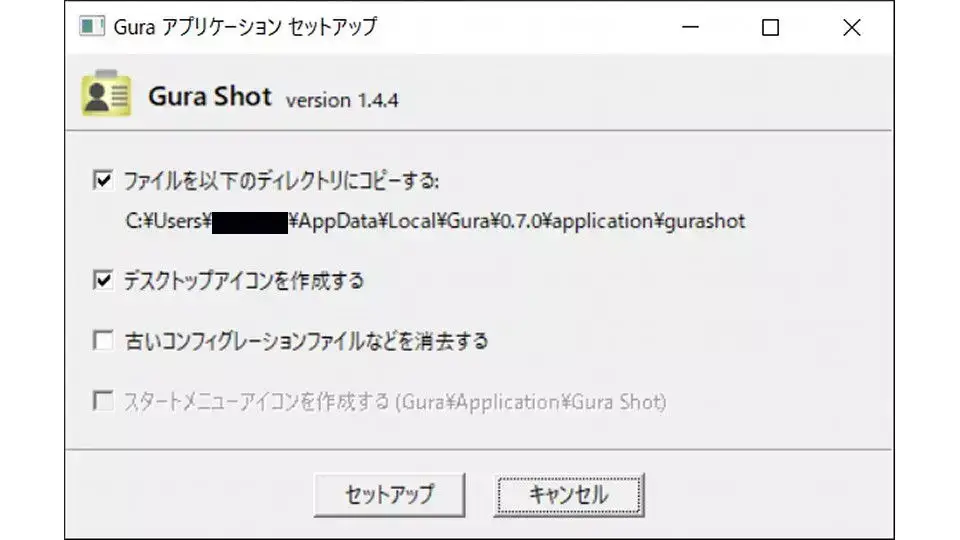- Guraアプリケーションセットアップより表示内容を確認し問題が無ければセットアップをクリックします。