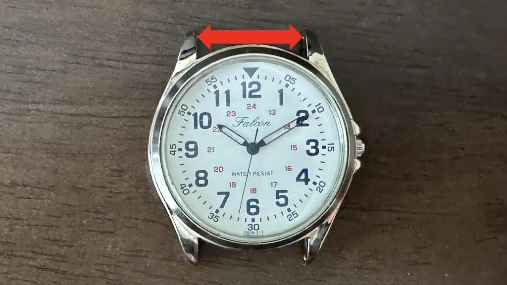 既存のバンドをバネ棒ツールを使って取り外します。バネ棒には溝が付いているので、それにバネ棒ツールをひっかけ縮めて取り外します。